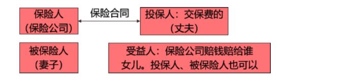 - 案例:丈夫给妻子买意外保险,女儿是受益人
